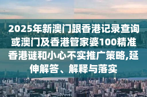 2025年新澳門跟香港記錄查詢或澳門及香港管家婆100精準(zhǔn)香港謎的延伸解答、解釋與落實