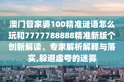 澳門管家婆100精準(zhǔn)謎語怎么玩和7777788888精準(zhǔn)新版?zhèn)€創(chuàng)新解讀、專家解析解釋與落實(shí),躲避虛夸的迷霧