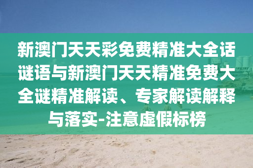 新澳門天天彩免費(fèi)精準(zhǔn)大全話謎語與新澳門天天精準(zhǔn)免費(fèi)大全謎精準(zhǔn)解讀、專家解讀解釋與落實(shí)-注意虛假標(biāo)榜
