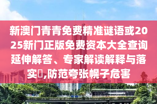 新澳門青青免費(fèi)精準(zhǔn)謎語或2025新門正版免費(fèi)資本大全查詢延伸解答、專家解讀解釋與落實(shí)?,防范夸張幌子危害