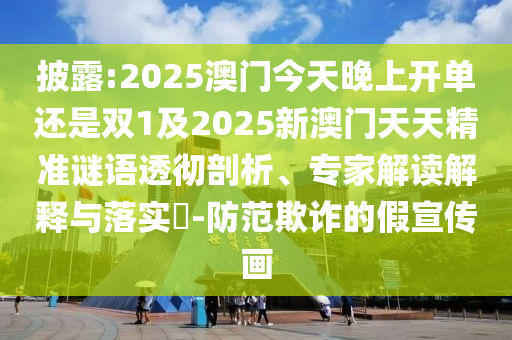 披露:2025澳門今天晚上開單還是雙1及2025新澳門天天精準(zhǔn)謎語透徹剖析、專家解讀解釋與落實(shí)?-防范欺詐的假宣傳畫