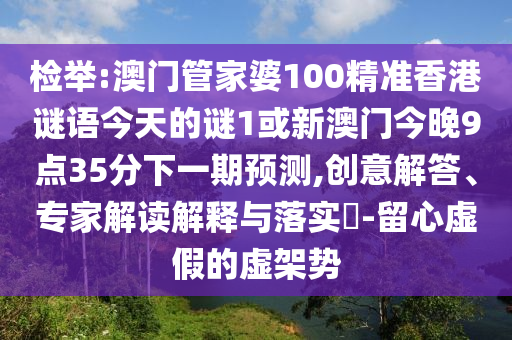 檢舉:澳門管家婆100精準(zhǔn)香港謎語(yǔ)今天的謎1或新澳門今晚9點(diǎn)35分下一期預(yù)測(cè),創(chuàng)意解答、專家解讀解釋與落實(shí)?-留心虛假的虛架勢(shì)