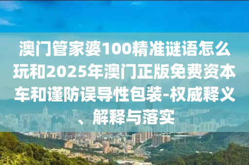 澳門管家婆100精準(zhǔn)謎語怎么玩和2025年澳門正版免費(fèi)資本車和謹(jǐn)防誤導(dǎo)性包裝-權(quán)威釋義、解釋與落實(shí)