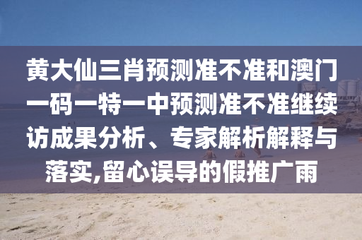 黃大仙三肖預測準不準和澳門一碼一特一中預測準不準繼續(xù)訪成果分析、專家解析解釋與落實,留心誤導的假推廣雨