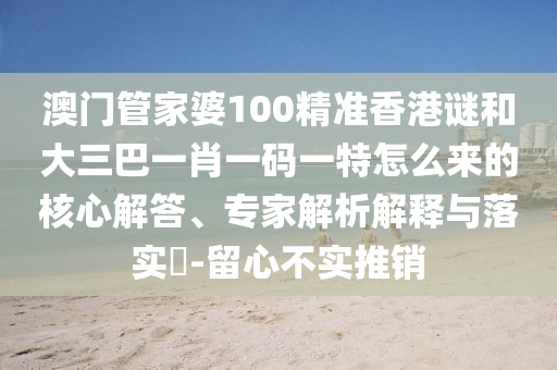 澳門管家婆100精準(zhǔn)香港謎和大三巴一肖一碼一特怎么來的:核心解答、專家解析解釋與落實(shí)?