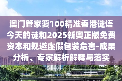 澳門管家婆100精準(zhǔn)香港謎語今天的謎和2025新奧正版免費(fèi)資本:成果分析、專家解析解釋與落實(shí)