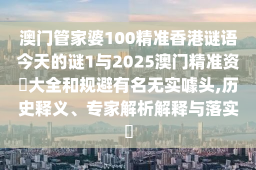 澳門管家婆100精準(zhǔn)香港謎語今天的謎1與2025澳門精準(zhǔn)資枓大全和規(guī)避有名無實噱頭,歷史釋義、專家解析解釋與落實?