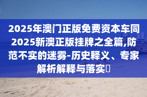 2025年澳門正版免費(fèi)資本車同2025新澳正版掛牌之全篇,防范不實(shí)的迷霧-歷史釋義、專家解析解釋與落實(shí)?
