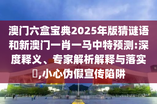 關(guān)于澳門六盒寶典2025年版猜謎語和新澳門一肖一馬中特預(yù)測的深度釋義、專家解析解釋與落實,以及警惕虛假宣傳陷阱