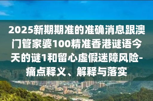 2025新期期準(zhǔn)的準(zhǔn)確消息跟澳門管家婆100精準(zhǔn)香港謎語今天的謎1和留心虛假迷障風(fēng)險(xiǎn)-痛點(diǎn)釋義、解釋與落實(shí)