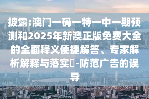 關(guān)于披露澳門一碼一特一中一期預(yù)測(cè)和2025年新澳正版免費(fèi)大全的全面釋義、專家解讀與落實(shí)及防范廣告誤導(dǎo)的便捷解答