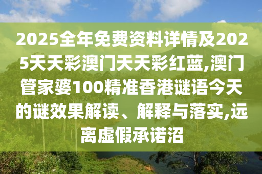 2025全年免費資料詳情及2025天天彩澳門天天彩紅藍,澳門管家婆100精準(zhǔn)香港謎語今天的謎效果解讀、解釋與落實,遠離虛假承諾沼
