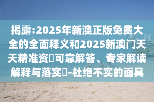 揭露:2025年新澳正版免費大全的全面釋義和2025新澳門天天精準(zhǔn)資枓可靠解答、專家解讀解釋與落實?-杜絕不實的面具