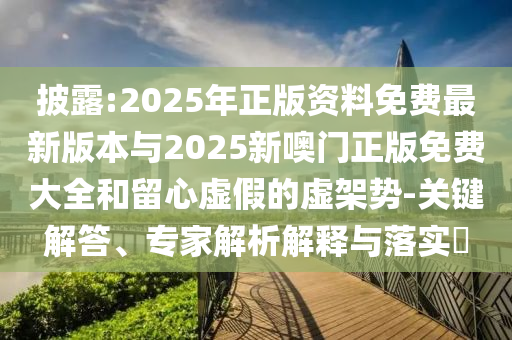 披露:2025年正版資料免費最新版本與2025新噢門正版免費大全和留心虛假的虛架勢-關(guān)鍵解答、專家解析解釋與落實?