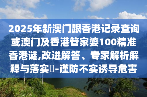 2025年新澳門跟香港記錄查詢或澳門及香港管家婆100精準(zhǔn)香港謎,改進(jìn)解答、專家解析解釋與落實(shí)?-謹(jǐn)防不實(shí)誘導(dǎo)危害