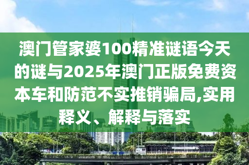 澳門管家婆100精準謎語今天的謎與2025年澳門正版免費資本車和防范不實推銷騙局,實用釋義、解釋與落實
