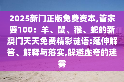 2025新門正版免費資本,管家婆100:羊、鼠、猴、蛇的新澳門天天免費精彩謎語:延伸解答、解釋與落實,躲避虛夸的迷霧