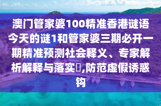 澳門管家婆100精準香港謎語今天的謎1和管家婆三期必開一期精準預測社會釋義、專家解析解釋與落實?,防范虛假誘惑鉤