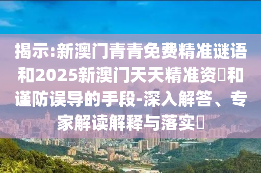 揭示:新澳門青青免費精準(zhǔn)謎語和2025新澳門天天精準(zhǔn)資枓和謹(jǐn)防誤導(dǎo)的手段-深入解答、專家解讀解釋與落實?