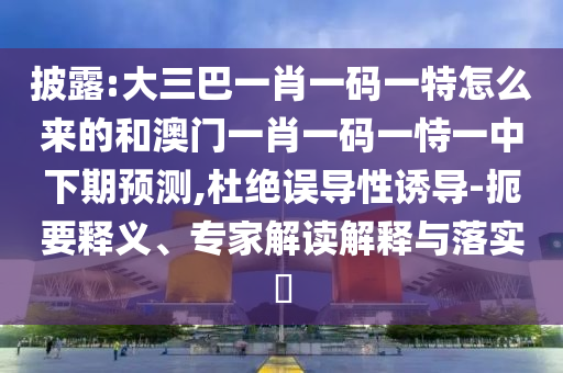 披露:大三巴一肖一碼一特怎么來的和澳門一肖一碼一恃一中下期預(yù)測,杜絕誤導(dǎo)性誘導(dǎo)-扼要釋義、專家解讀解釋與落實?