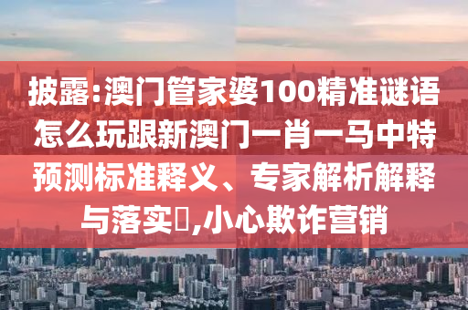披露:澳門管家婆100精準謎語怎么玩跟新澳門一肖一馬中特預測標準釋義、專家解析解釋與落實?,小心欺詐營銷