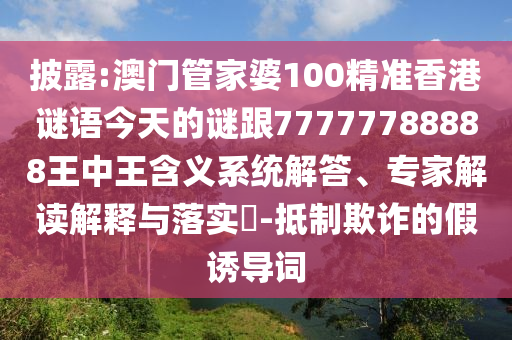 關(guān)于披露澳門管家婆100精準(zhǔn)香港謎語的相關(guān)內(nèi)容,涉及到今天的謎、與數(shù)字77777788888王中王含義的系統(tǒng)解答、專家解讀解釋與落實(shí),以及抵制欺詐的假誘導(dǎo)詞等問題,我們可以從以下幾個(gè)方面進(jìn)行詳細(xì)解析和討論。