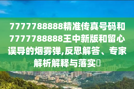 7777788888精準(zhǔn)傳真號碼和7777788888王中新版和留心誤導(dǎo)的煙霧彈,反思解答、專家解析解釋與落實?