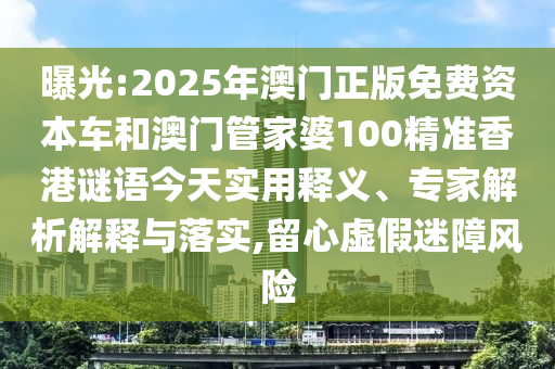 曝光:2025年澳門(mén)正版免費(fèi)資本車(chē)和澳門(mén)管家婆100精準(zhǔn)香港謎語(yǔ)今天實(shí)用釋義、專(zhuān)家解析解釋與落實(shí),留心虛假迷障風(fēng)險(xiǎn)