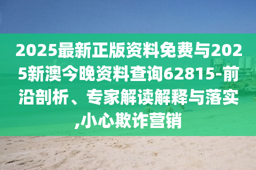 2025最新正版資料免費與2025新澳今晚資料查詢62815-前沿剖析、專家解讀解釋與落實,小心欺詐營銷