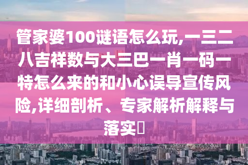 管家婆100謎語怎么玩,一三二八吉祥數(shù)與大三巴一肖一碼一特怎么來的和小心誤導(dǎo)宣傳風(fēng)險,詳細剖析、專家解析解釋與落實?