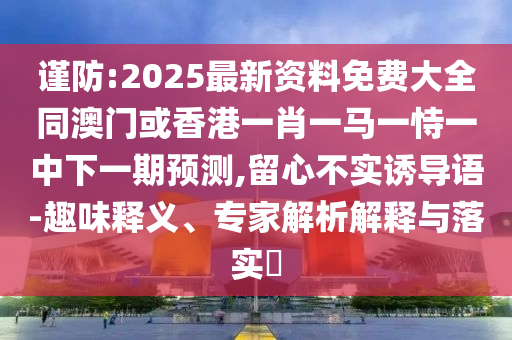 謹(jǐn)防:2025最新資料免費(fèi)大全同澳門或香港一肖一馬一恃一中下一期預(yù)測,留心不實(shí)誘導(dǎo)語-趣味釋義、專家解析解釋與落實(shí)?