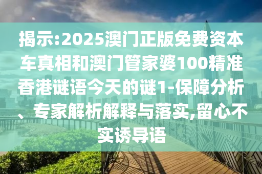 揭示:2025澳門正版免費資本車真相和澳門管家婆100精準香港謎語今天的謎1-保障分析、專家解析解釋與落實,留心不實誘導語