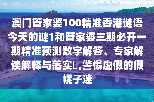 澳門管家婆100精準(zhǔn)香港謎語今天的謎1和管家婆三期必開一期精準(zhǔn)預(yù)測數(shù)字解答、專家解讀解釋與落實(shí)?,警惕虛假的假幌子迷