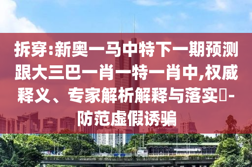 關于拆穿“新奧一馬中特下一期預測”與“大三巴一肖一特一肖中”及防范虛假誘騙的權威釋義、專家解析解釋與落實