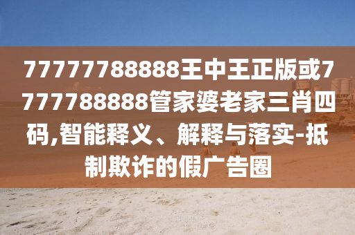 關(guān)于關(guān)鍵詞“77777788888王中王正版”、“7777788888管家婆老家三肖四碼”以及“抵制欺詐的假廣告圈”的智能釋義、解釋與落實(shí),以下是從全面釋義、專家解讀與落實(shí)、警惕虛假宣傳等方面進(jìn)行的詳細(xì)解析。