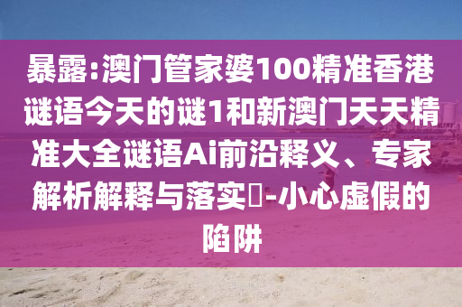 關(guān)于關(guān)鍵詞“暴露”、“澳門管家婆”、“香港謎語(yǔ)”、“新澳門天天精準(zhǔn)大全謎語(yǔ)”以及“虛假宣傳”的前沿釋義、專家解析解釋與落實(shí)的詳細(xì)解釋如下: