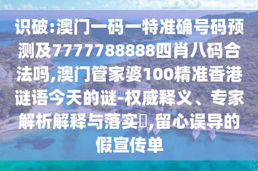 識(shí)破:澳門一碼一特準(zhǔn)確號(hào)碼預(yù)測(cè)及7777788888四肖八碼合法嗎,澳門管家婆100精準(zhǔn)香港謎語今天的謎-權(quán)威釋義、專家解析解釋與落實(shí)?,留心誤導(dǎo)的假宣傳單