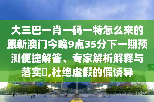 關(guān)于大三巴一肖一碼一特怎么來(lái)的跟新澳門(mén)今晚9點(diǎn)35分下一期預(yù)測(cè)便捷解答、專家解析解釋與落實(shí),以及如何杜絕虛假的假誘導(dǎo)這一問(wèn)題,以下是對(duì)相關(guān)內(nèi)容的全面解析。