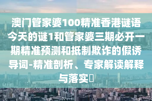 澳門(mén)管家婆100精準(zhǔn)香港謎語(yǔ)今天的謎1和管家婆三期必開(kāi)一期精準(zhǔn)預(yù)測(cè)和抵制欺詐的假誘導(dǎo)詞-精準(zhǔn)剖析、專(zhuān)家解讀解釋與落實(shí)?