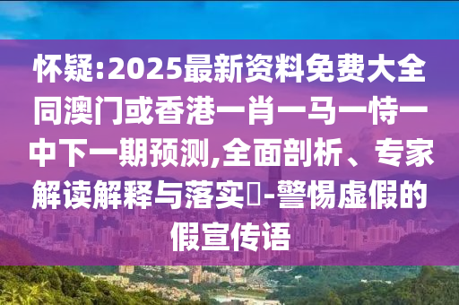 懷疑:2025最新資料免費(fèi)大全同澳門或香港一肖一馬一恃一中下一期預(yù)測,全面剖析、專家解讀解釋與落實(shí)?-警惕虛假的假宣傳語