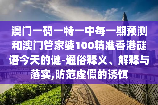 關(guān)于澳門一碼一特一中每一期預(yù)測和澳門管家婆100精準(zhǔn)香港謎語今天的謎的通俗釋義、解釋與落實,以及防范虛假的誘餌