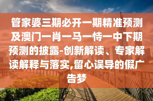 管家婆三期必開一期精準預測及澳門一肖一馬一恃一中下期預測的披露-創(chuàng)新解讀、專家解讀解釋與落實,留心誤導的假廣告夢