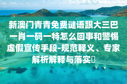 關(guān)于新澳門(mén)青青免費(fèi)謎語(yǔ)與大三巴一肖一碼一特的解讀及警惕虛假宣傳手段的規(guī)范釋義、專(zhuān)家解析解釋與落實(shí)