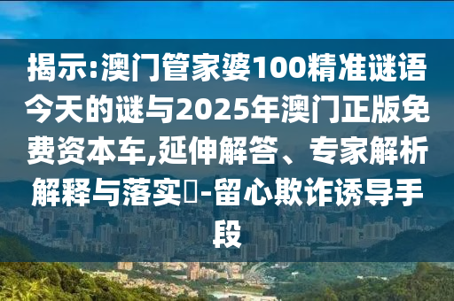 關于澳門管家婆的精準謎語、資本車延伸解答、專家解析及防范欺詐誘導手段的揭示