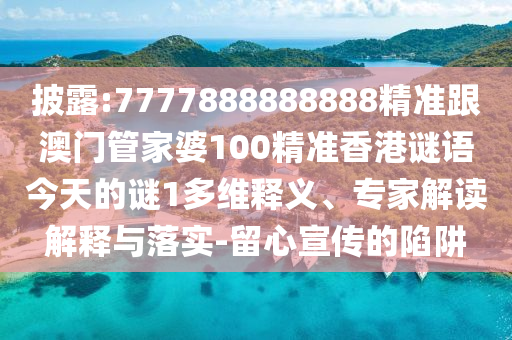 披露:7777888888888精準(zhǔn)跟澳門管家婆100精準(zhǔn)香港謎語今天的謎1多維釋義、專家解讀解釋與落實(shí)-留心宣傳的陷阱