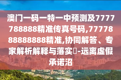 澳門一碼一特一中預(yù)測及7777788888精準(zhǔn)傳真號碼,7777888888888精準(zhǔn),協(xié)同解答、專家解析解釋與落實?-遠(yuǎn)離虛假承諾沼