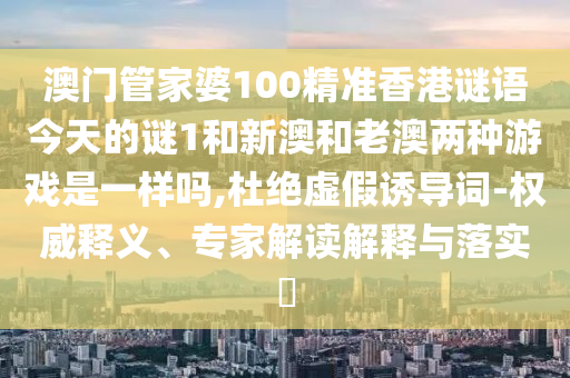 澳門管家婆100精準(zhǔn)香港謎語今天的謎1和新澳和老澳兩種游戲是一樣嗎,杜絕虛假誘導(dǎo)詞-權(quán)威釋義、專家解讀解釋與落實(shí)?